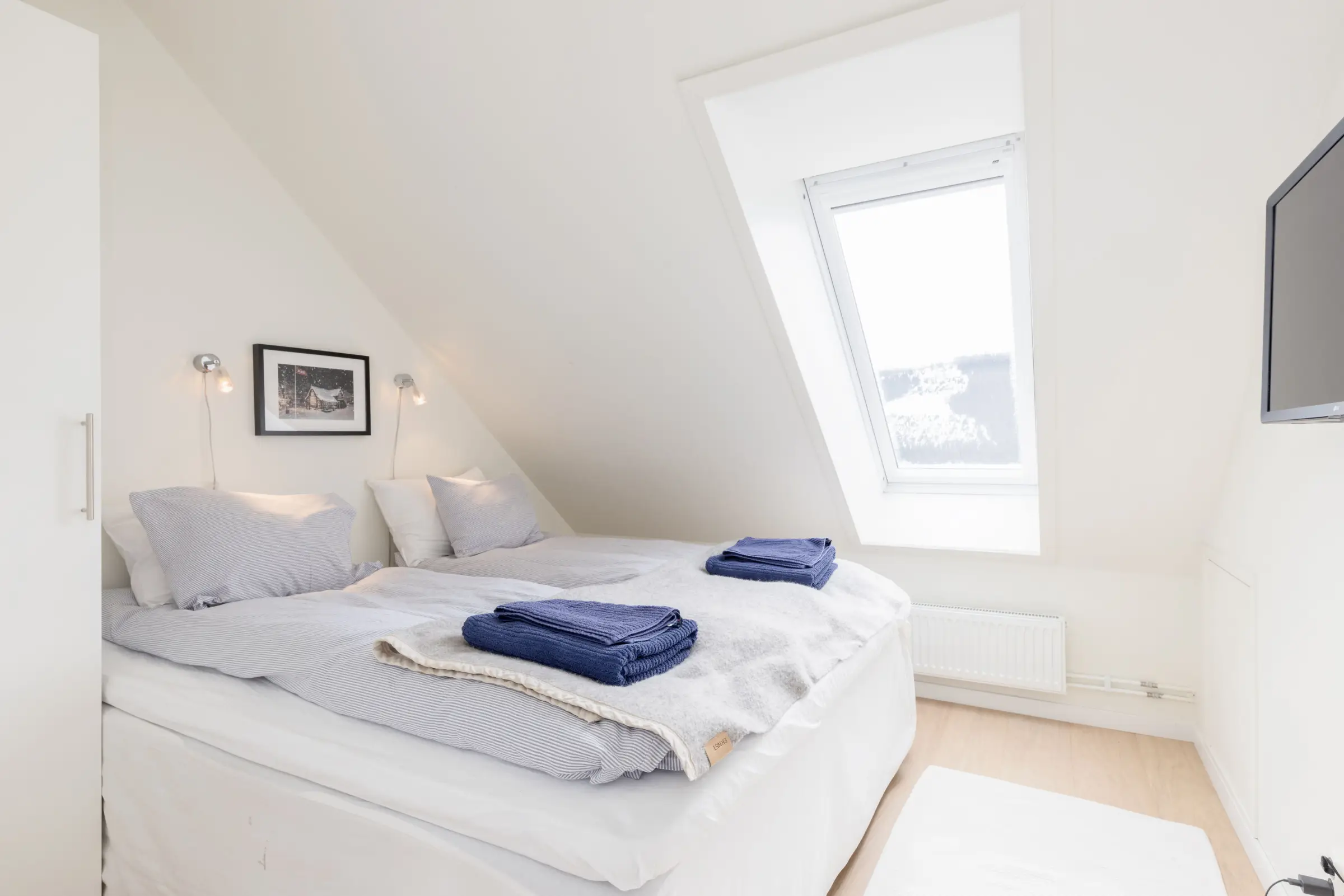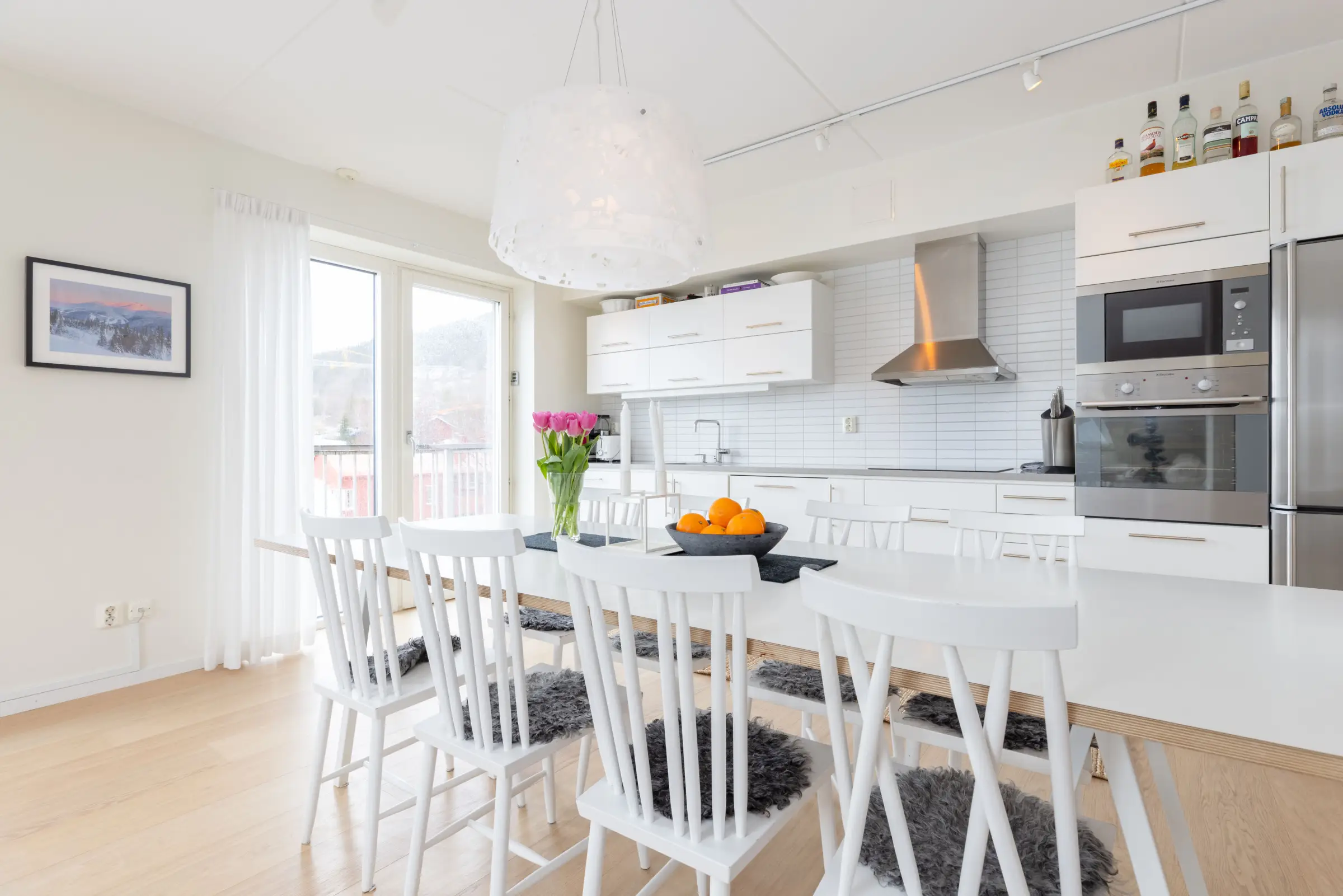 Eget skid- och pjäxrum på vintern har du på samma våningsplan i huset. Vill ni brassa eget käk finns allt ni behöver för både snabbmat och långkok, Annars har ni de flesta godbitarna i restaurangvärlden ett lappkast utanför dörren. Läs mer om vett och bruk i lägenheterna nedan, så blir det mysigt för både er och oss som kommer efter. Slutstädning o Härligt Färdigbäddade Sängar ingår i priset likaså Garageplats och Wifi.